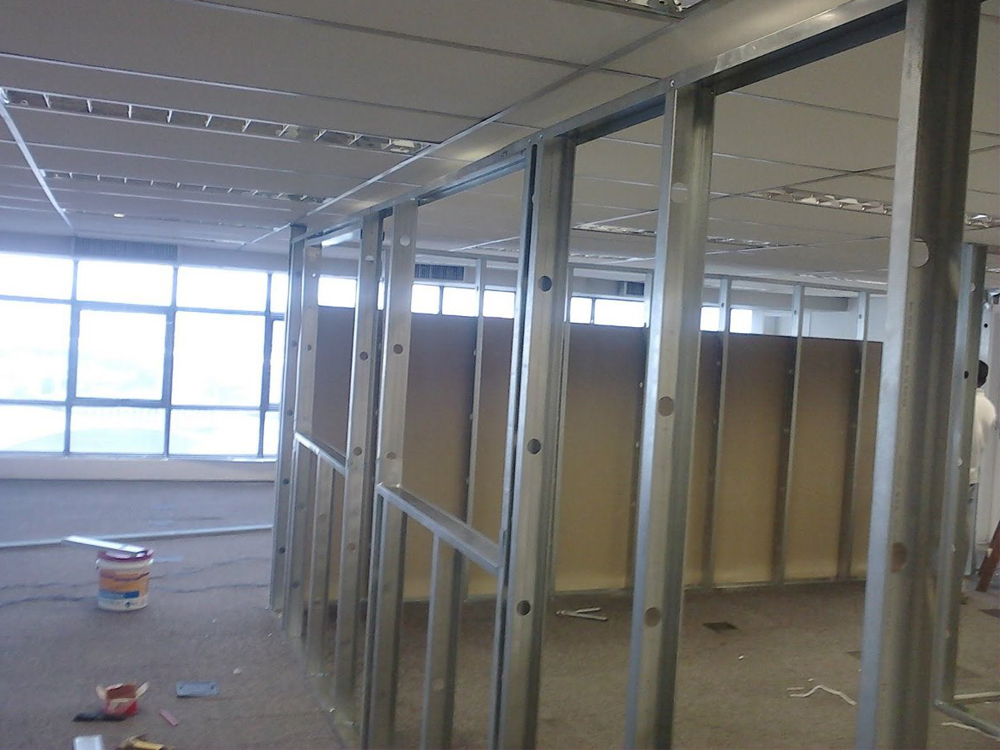 Paredes internas retas ou curvas, não estruturais de edifícios e não expostas a intempéries. São constituídas por placas de gesso, pré-fabricadas a partir da gipsita natural, parafusadas em uma estrutura metálica leve. A estrutura, em perfilados de aço zincado, é constituída por guias e montantes, sobre os quais são fixadas as placas de gesso, em uma ou mais camadas, gerando uma superfície apta a receber o acabamento final. O Sistema permite a utilização de Chapas que adequam o ambiente de acordo com a necessidade: