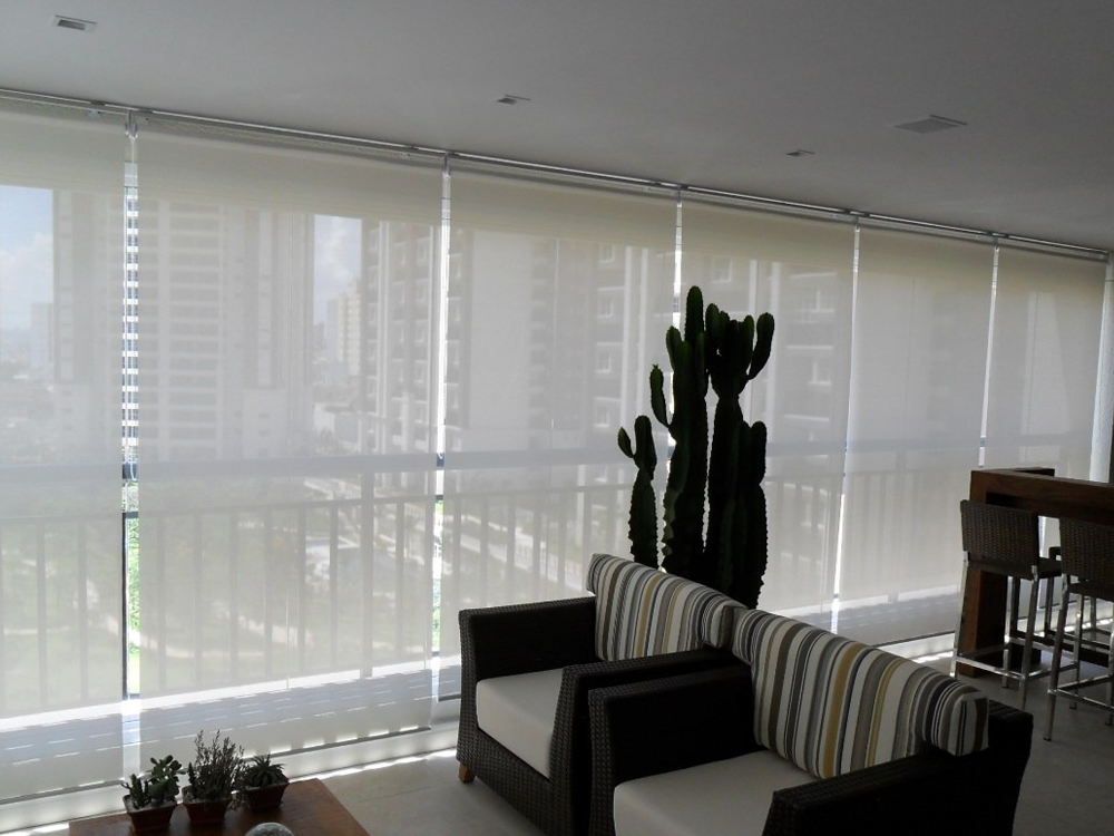 Elegante e simples, a cortina Rolô chama atenção, por causar um efeito clean. De fácil manuseio e limpeza. Este modelo que alia tecnologia e inovação, pode ser confeccionado nas opções translúcidas e blackout, motorizadas ou não. A cortina Rolô atende com maestria a cobertura de janelas com grandes áreas de vidros. Suas linhas retas e discretas ajustam-se perfeitamente á arquitetura moderna e á decoração interna. Amplas coleções de telas solares proporcionam o nível de escurecimento ideal e o máximo controle solar, sem obstruir a vista.